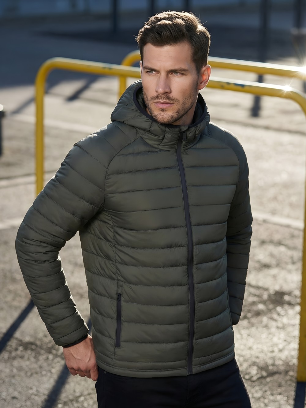 Мужская гибридная стёганая куртка с капюшоном — лёгкая и функциональная модель для повседневной носки в городе и активного отдыха. Куртка сочетает утеплённую стёганую конструкцию и эластичные вставки Softshell, благодаря чему обеспечивает комфорт, свободу движения и современный спортивный стиль.