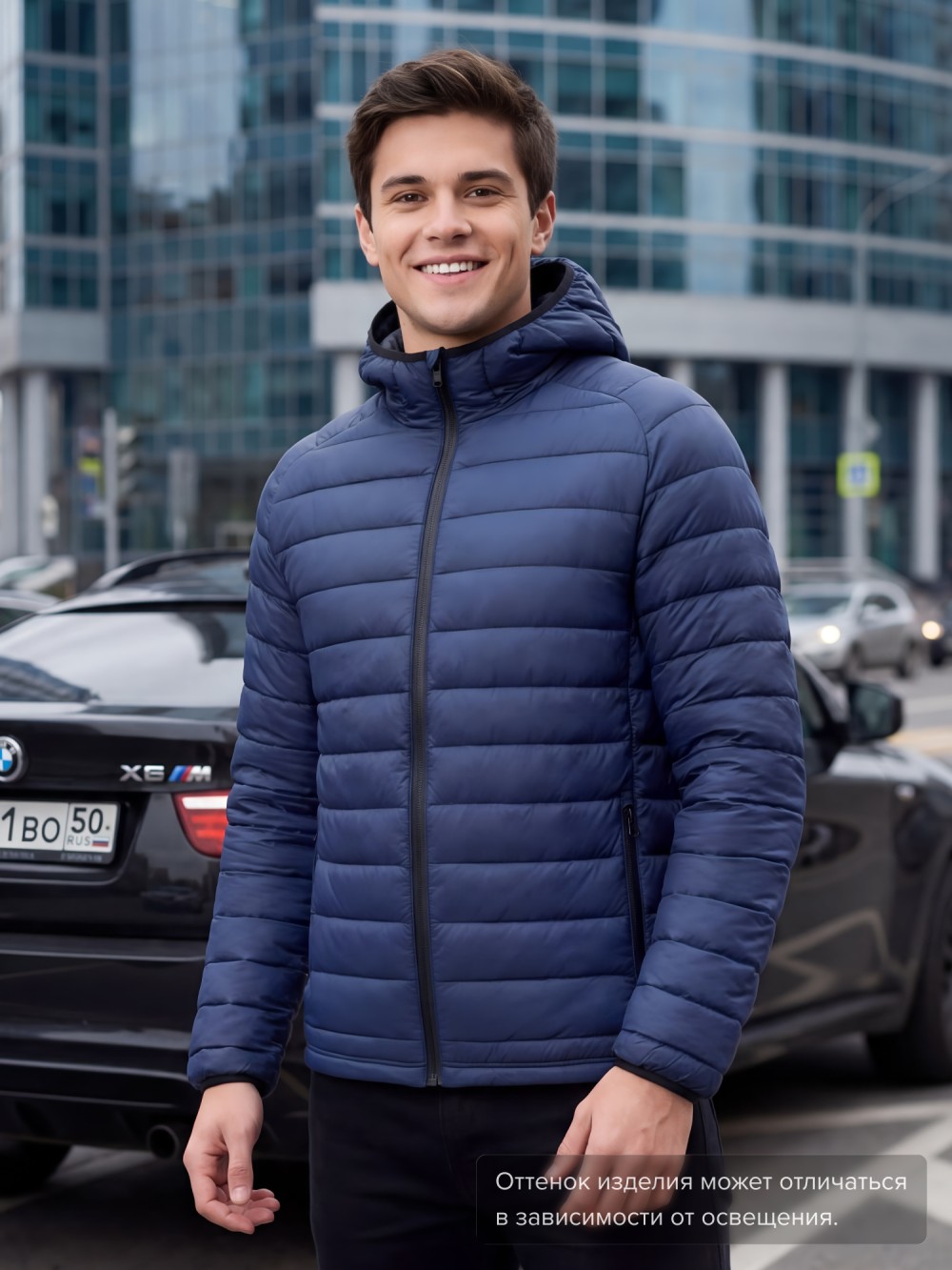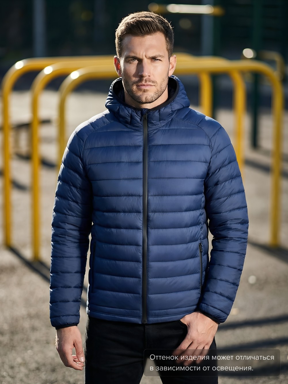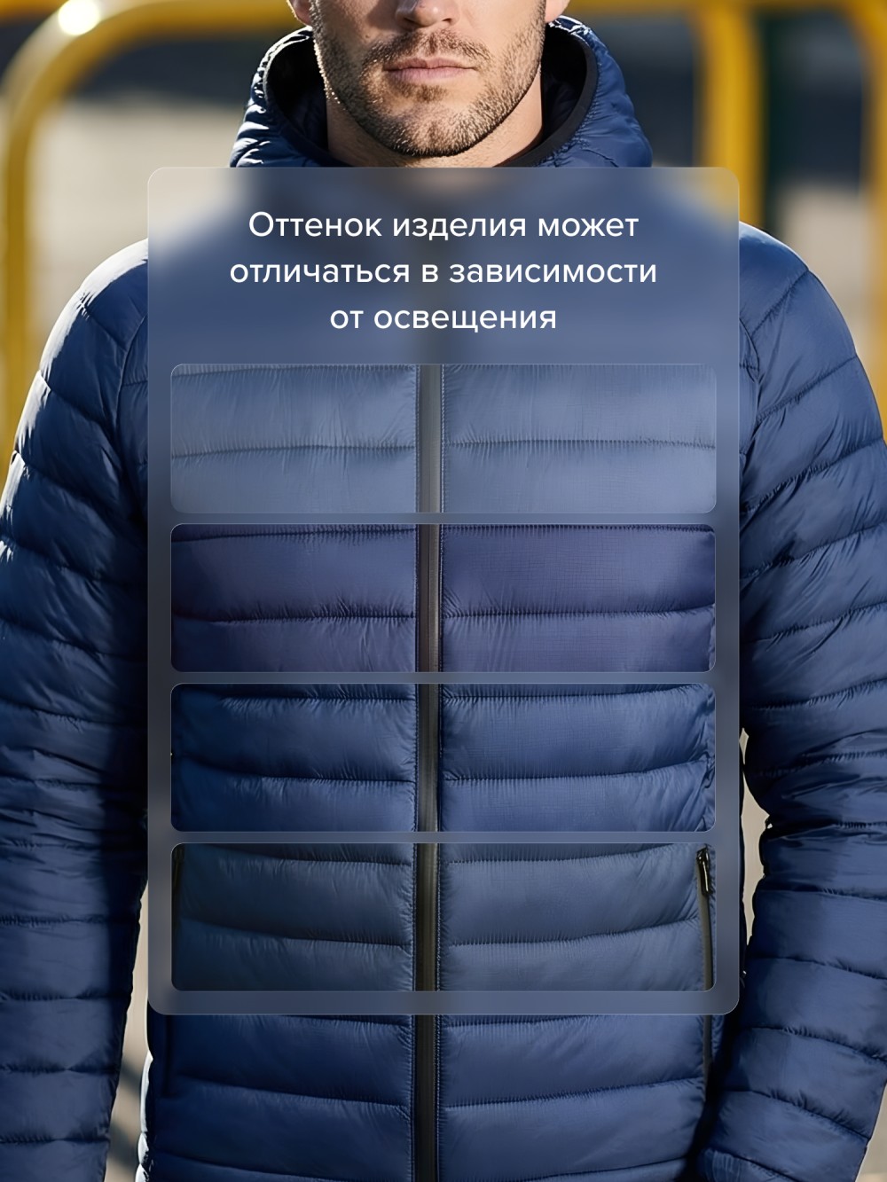Куртка мужская гибридная стёганая с капюшоном с графеновой подкладкой темно-синего цвета 9621_1TS