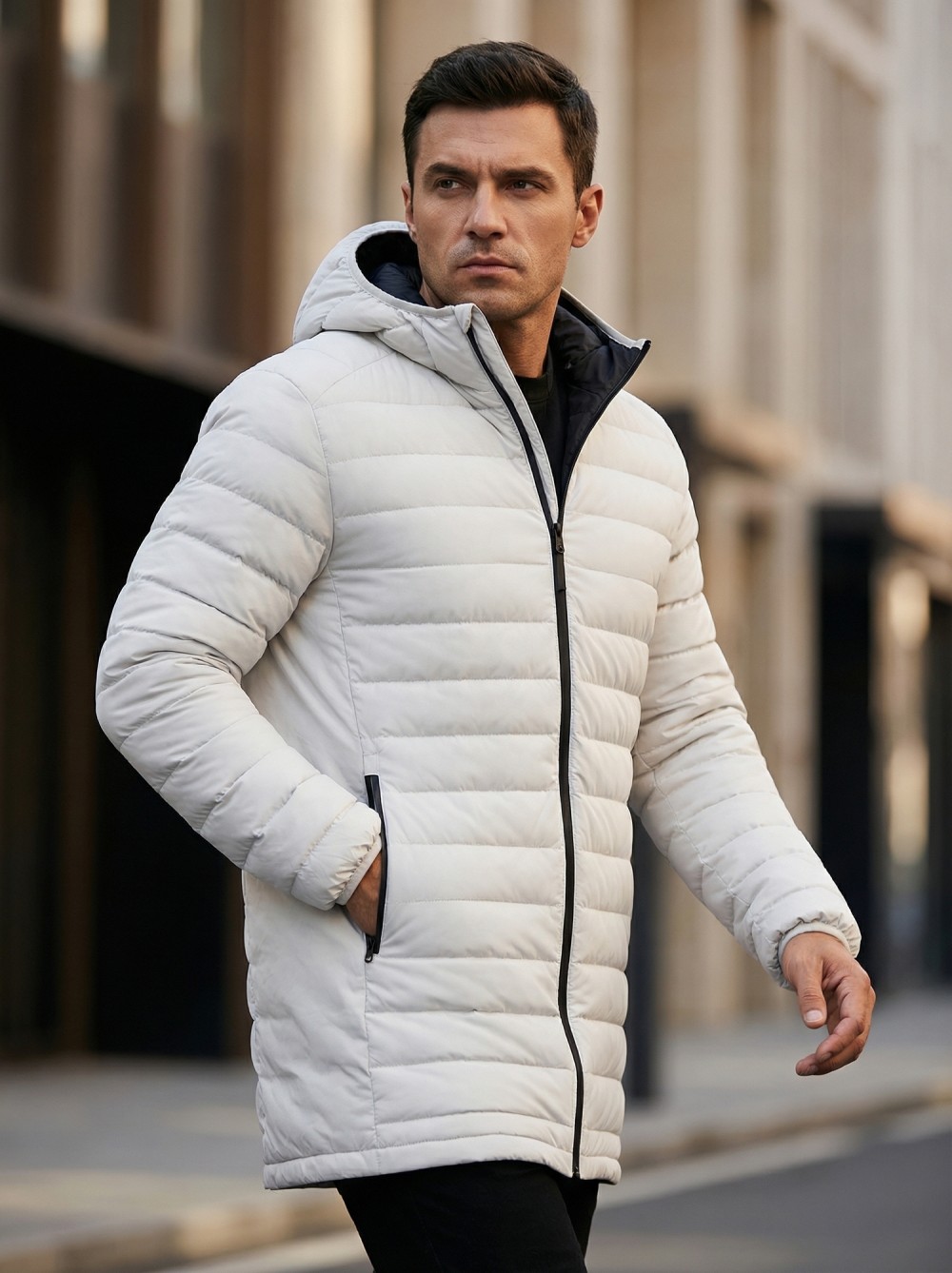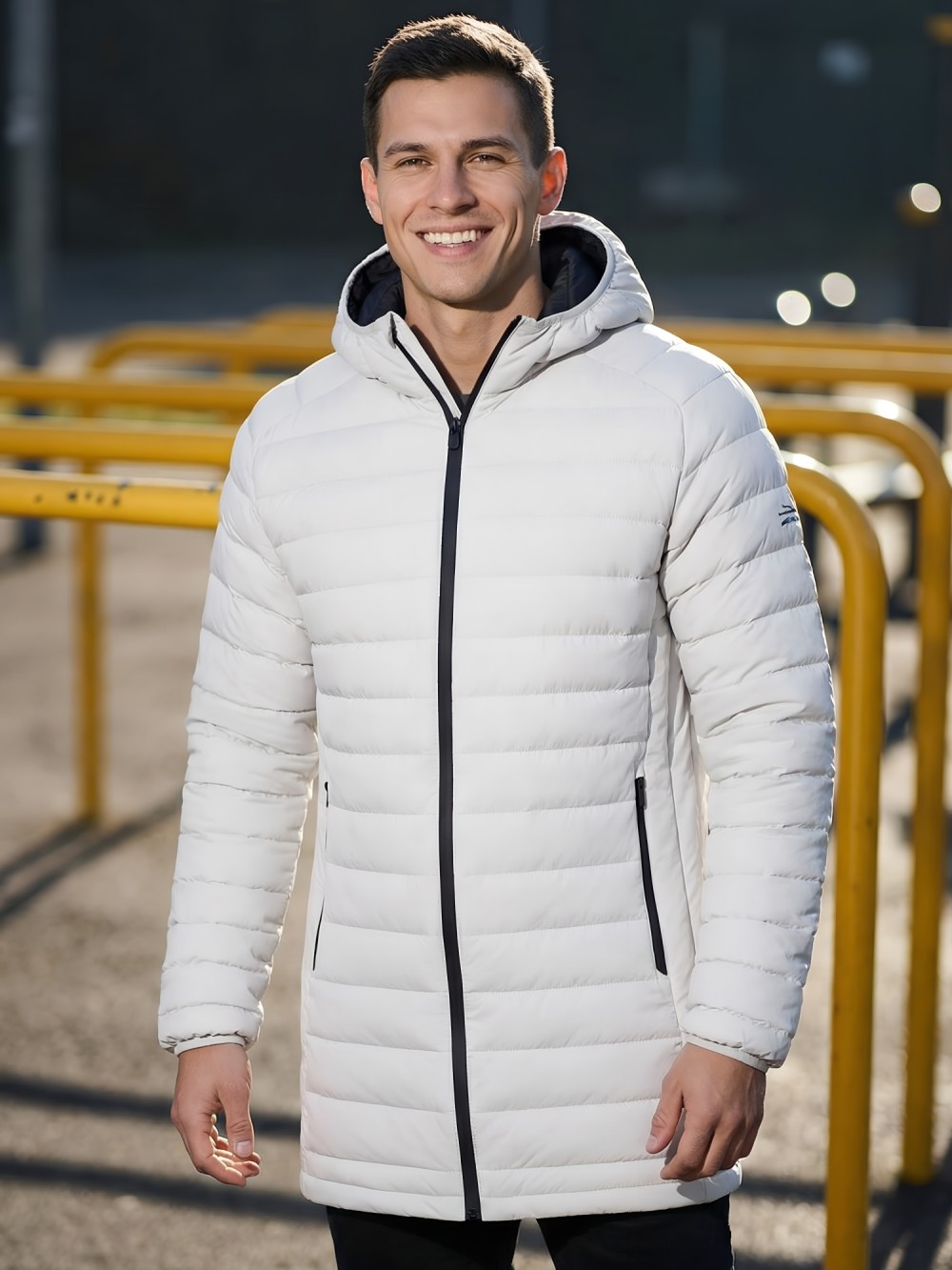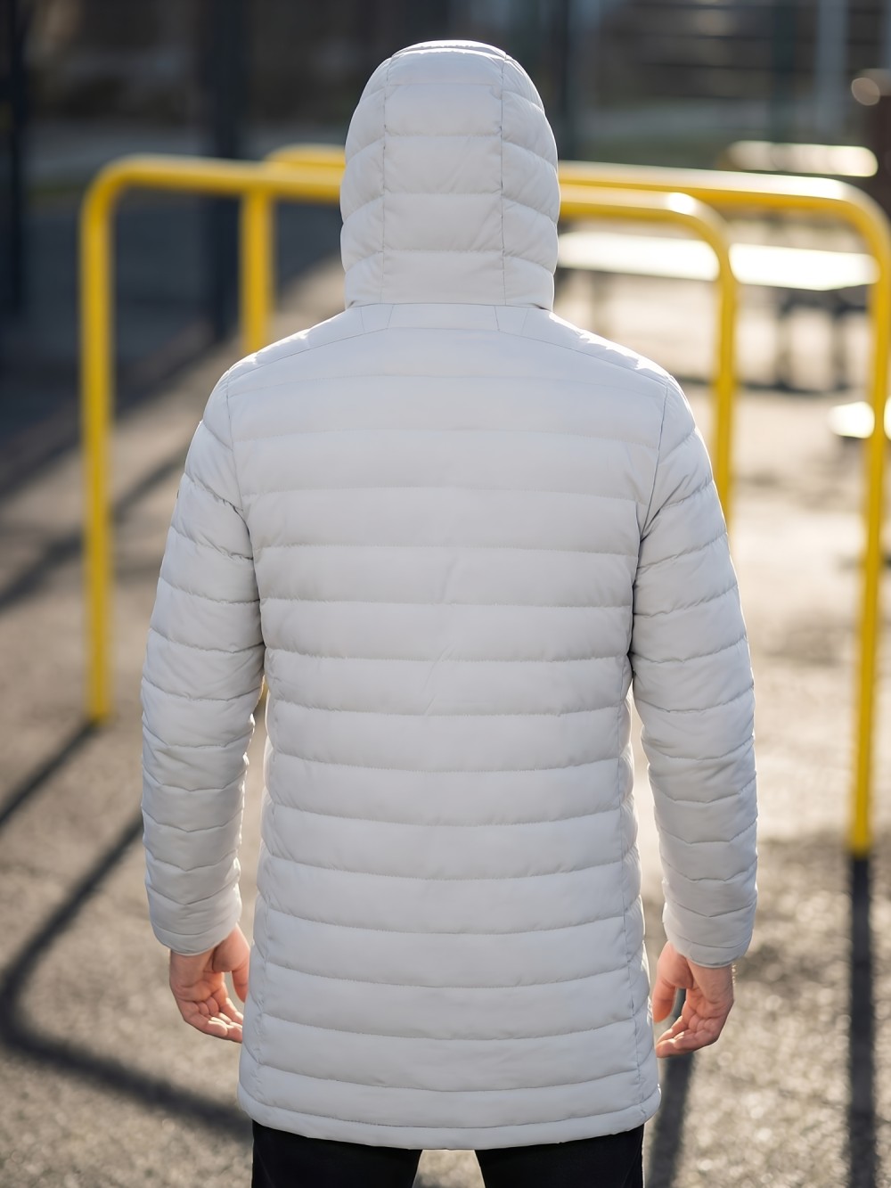Удлинённый силуэт обеспечивает дополнительную защиту от ветра и создаёт ощущение уюта и защищённости. Капюшон помогает сохранить тепло и защищает от непогоды, делая куртку ещё более практичной для повседневной носки.