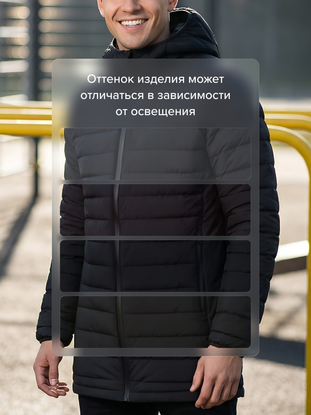 Куртка мужская удлинённая стёганая с капюшоном и графеновой подкладкой черного цвета 9629_1Ch