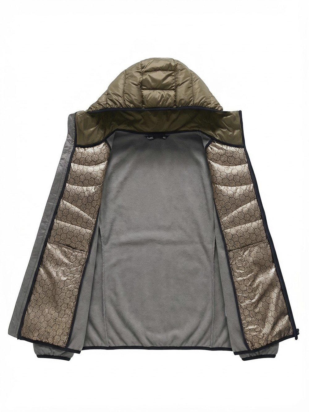 Внутренняя часть куртки выполнена из комбинированной подкладки: теплосберегающая фольгированная подкладка с графеновым покрытием помогает отражать тепло тела и сохранять его внутри, а мягкая флисовая подкладка создаёт дополнительное ощущение уюта и комфорта при носке. Такое сочетание материалов позволяет поддерживать комфортную температуру и делает куртку особенно приятной в прохладную погоду.