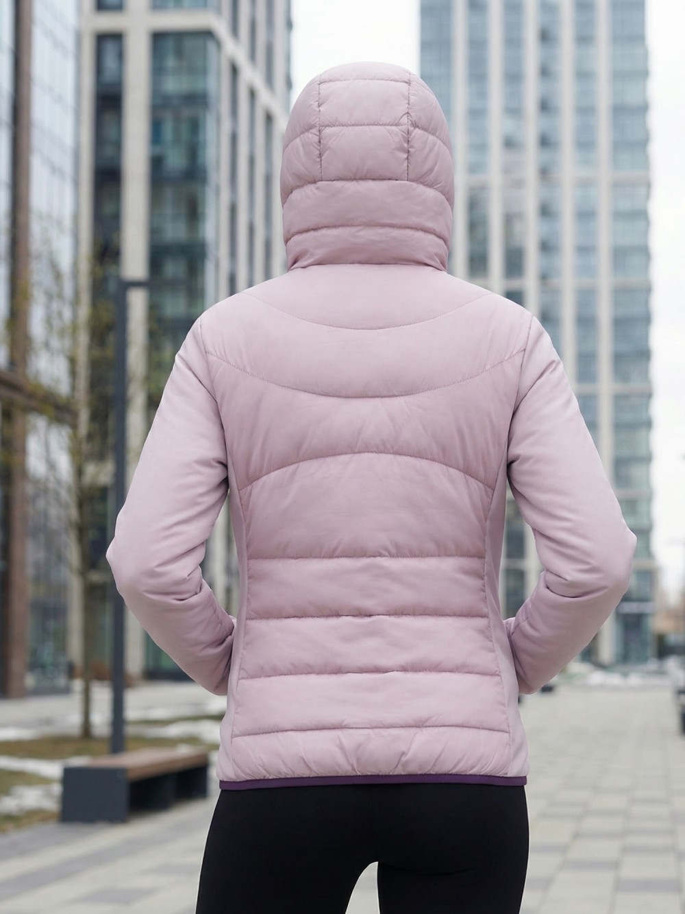 Куртка женская гибридная стёганая с капюшоном с графеновой подкладкой розового цвета 9630_1R