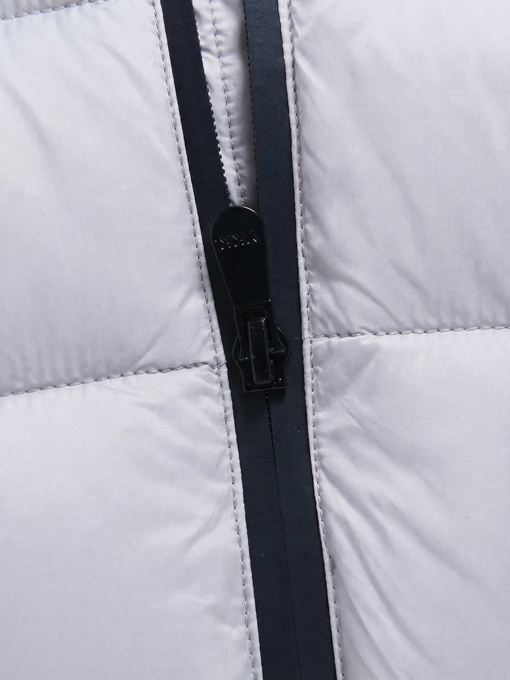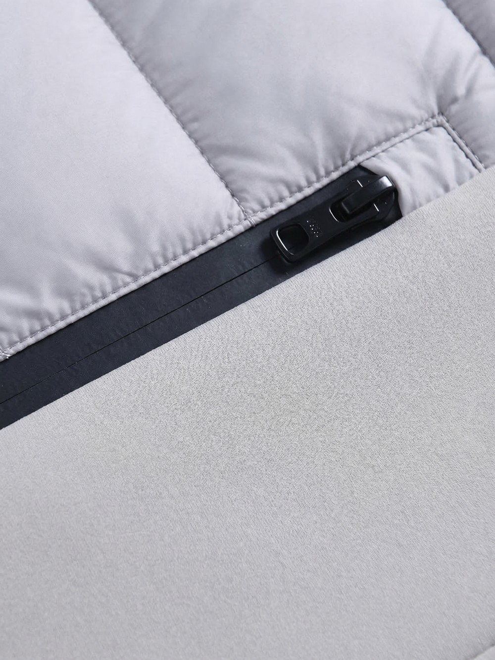 Передняя часть выполнена из прочного стёганого материала с современным утеплителем тинсулейт, который эффективно удерживает тепло, оставаясь лёгким и воздухопроницаемым. Этот утеплитель известен своей способностью сохранять комфортную температуру без лишнего объёма, поэтому куртка остаётся лёгкой и удобной в течение всего дня.