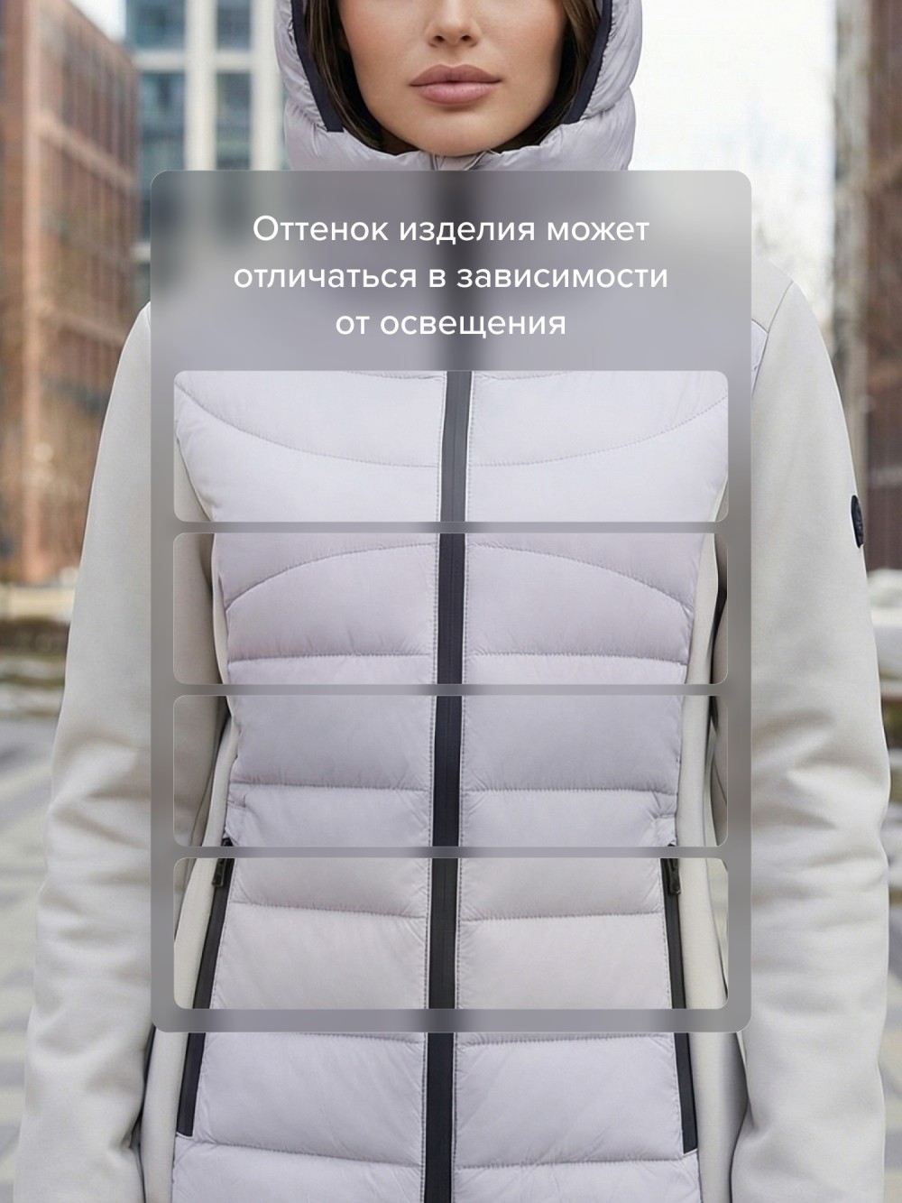 Модель дополнена удобным капюшоном, практичными карманами на молнии и качественной фурнитурой. Продуманный крой формирует аккуратный силуэт, а сочетание разных фактур материалов делает куртку стильной и современной.