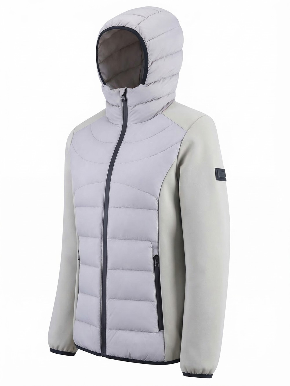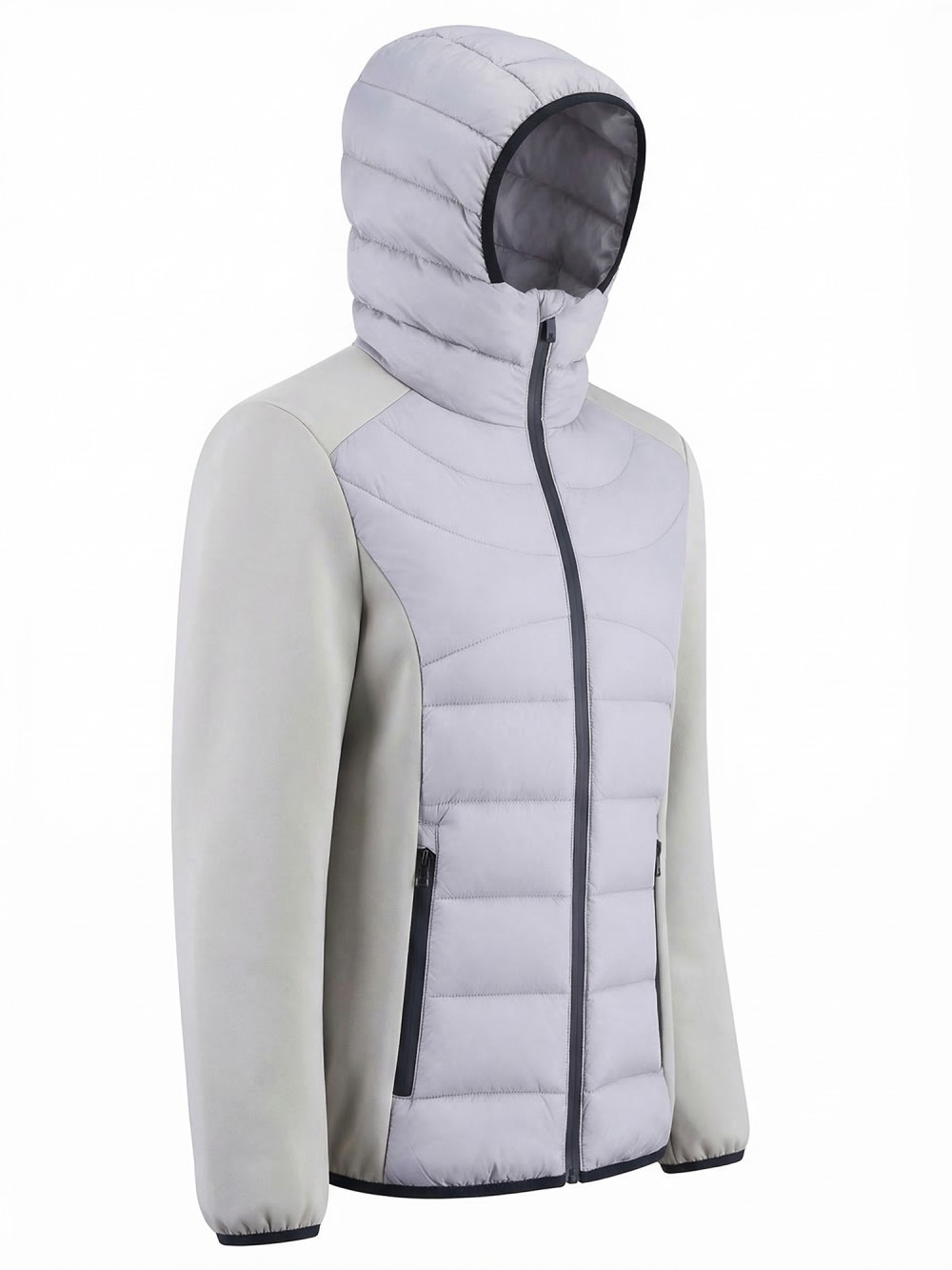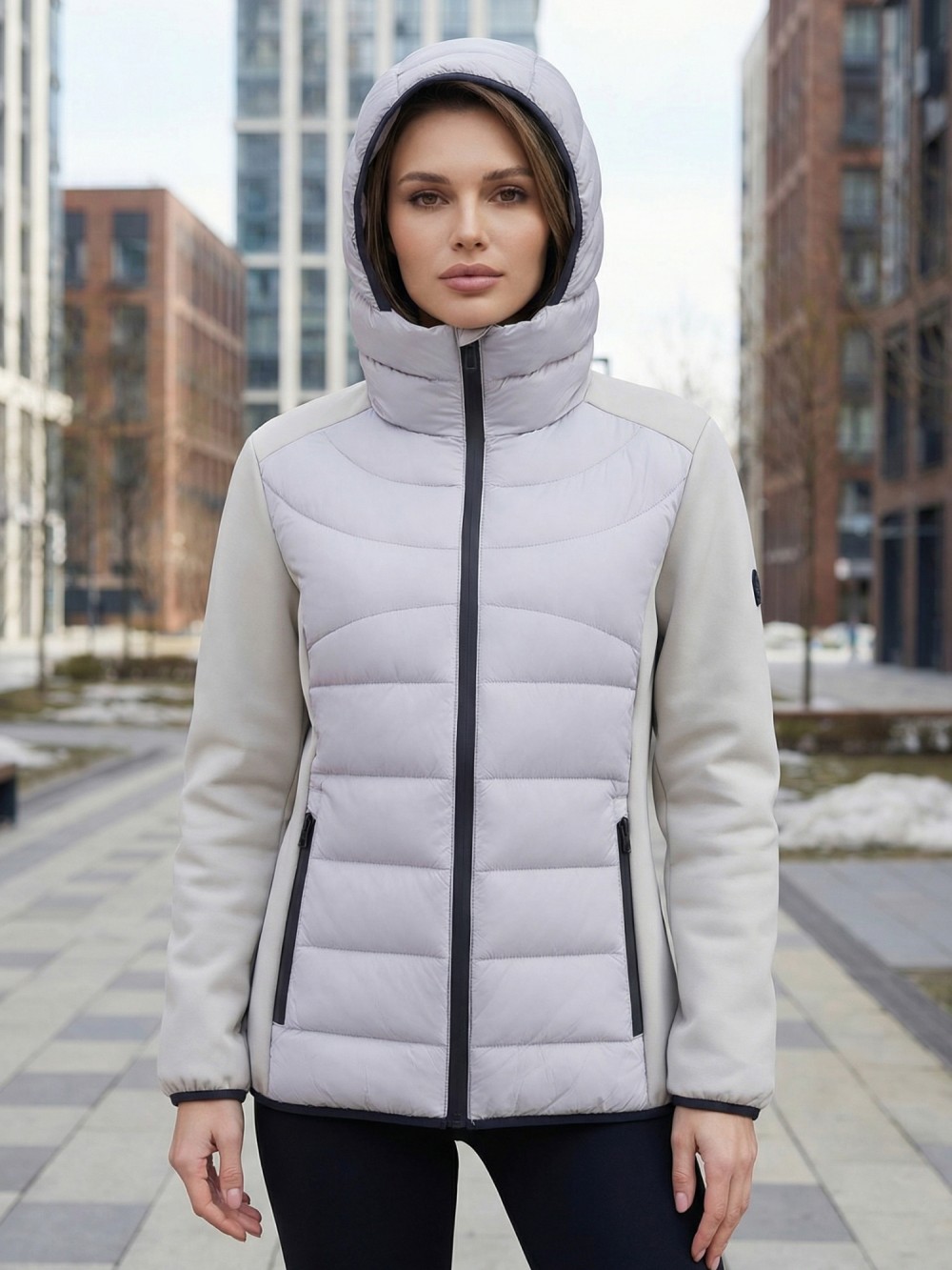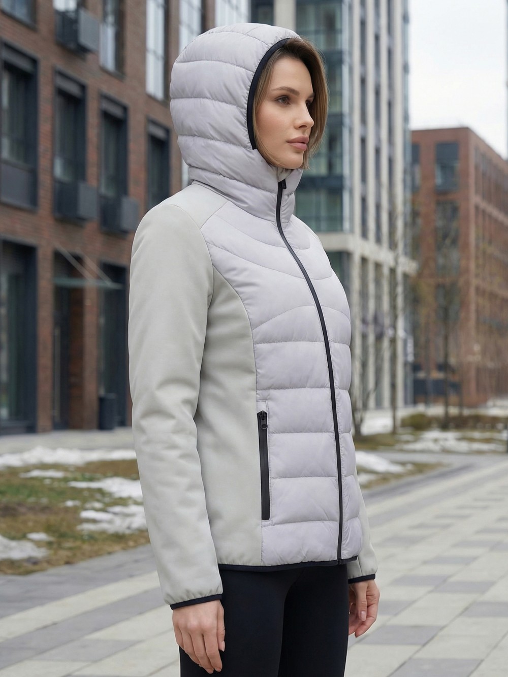 Куртка женская гибридная стёганая с капюшоном с графеновой подкладкой серого цвета 9626_1Sr