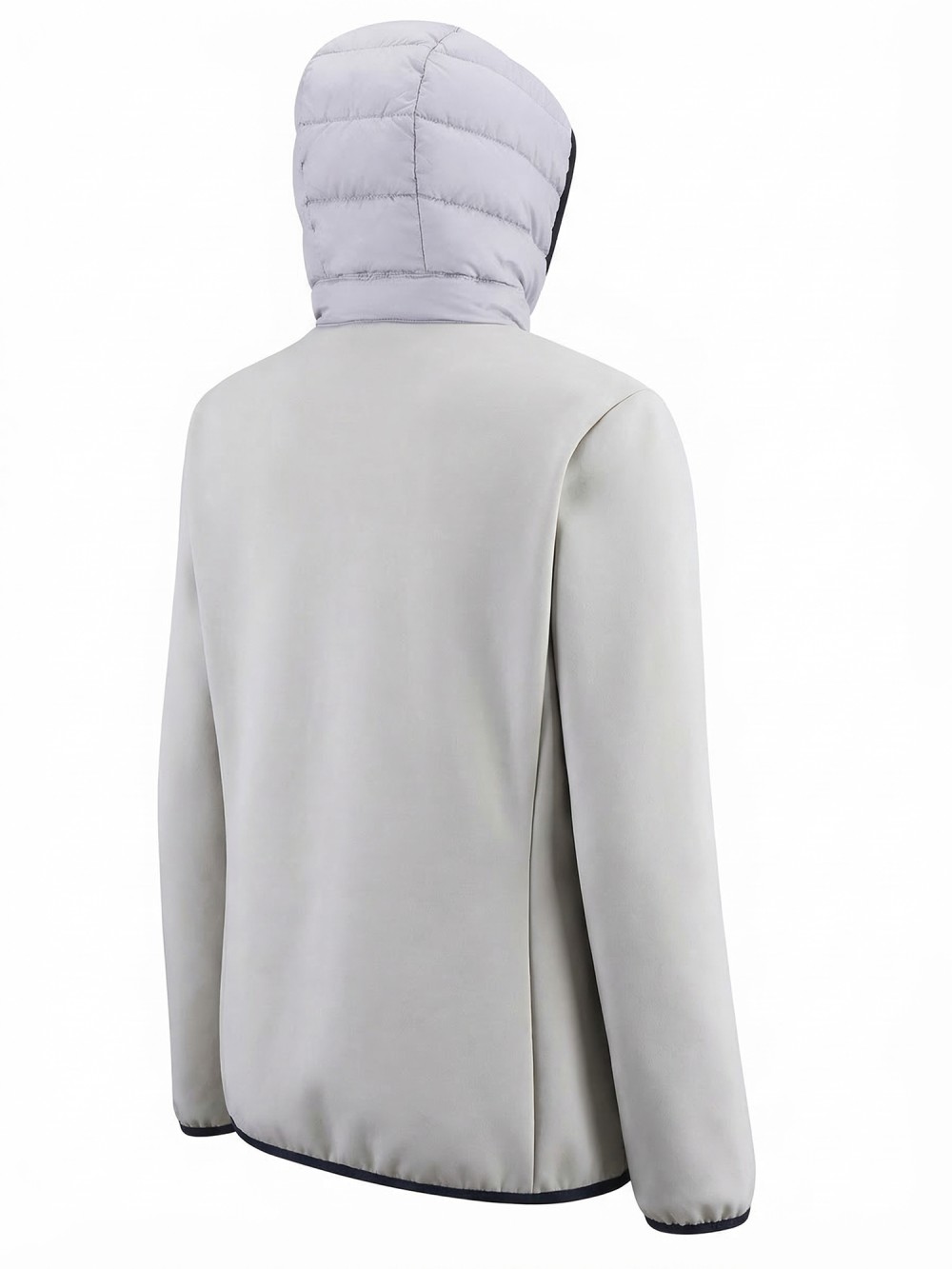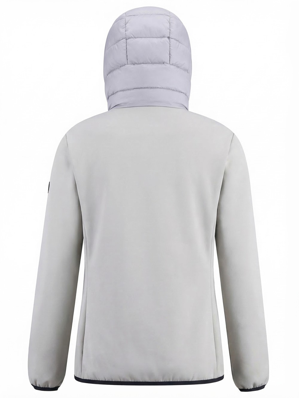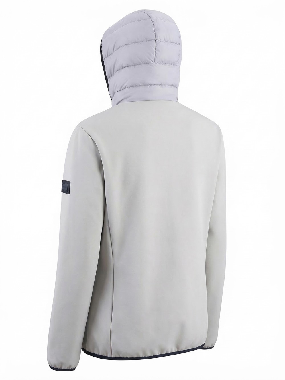 Рукава и боковые части выполнены из эластичного материала софтшелл, который защищает от ветра, хорошо тянется и обеспечивает свободу движения. Благодаря этому куртка удобно сидит по фигуре и подходит как для активного образа жизни, так и для повседневной носки.