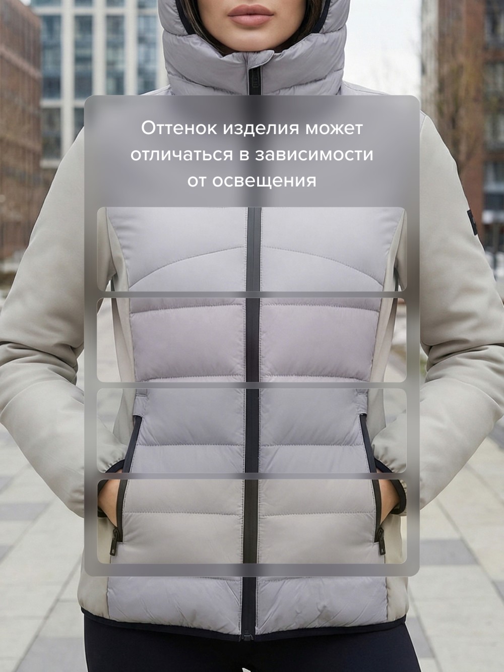 Куртка женская гибридная стёганая с капюшоном с графеновой подкладкой серого цвета 9630_1Sr