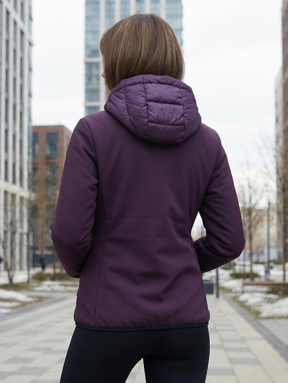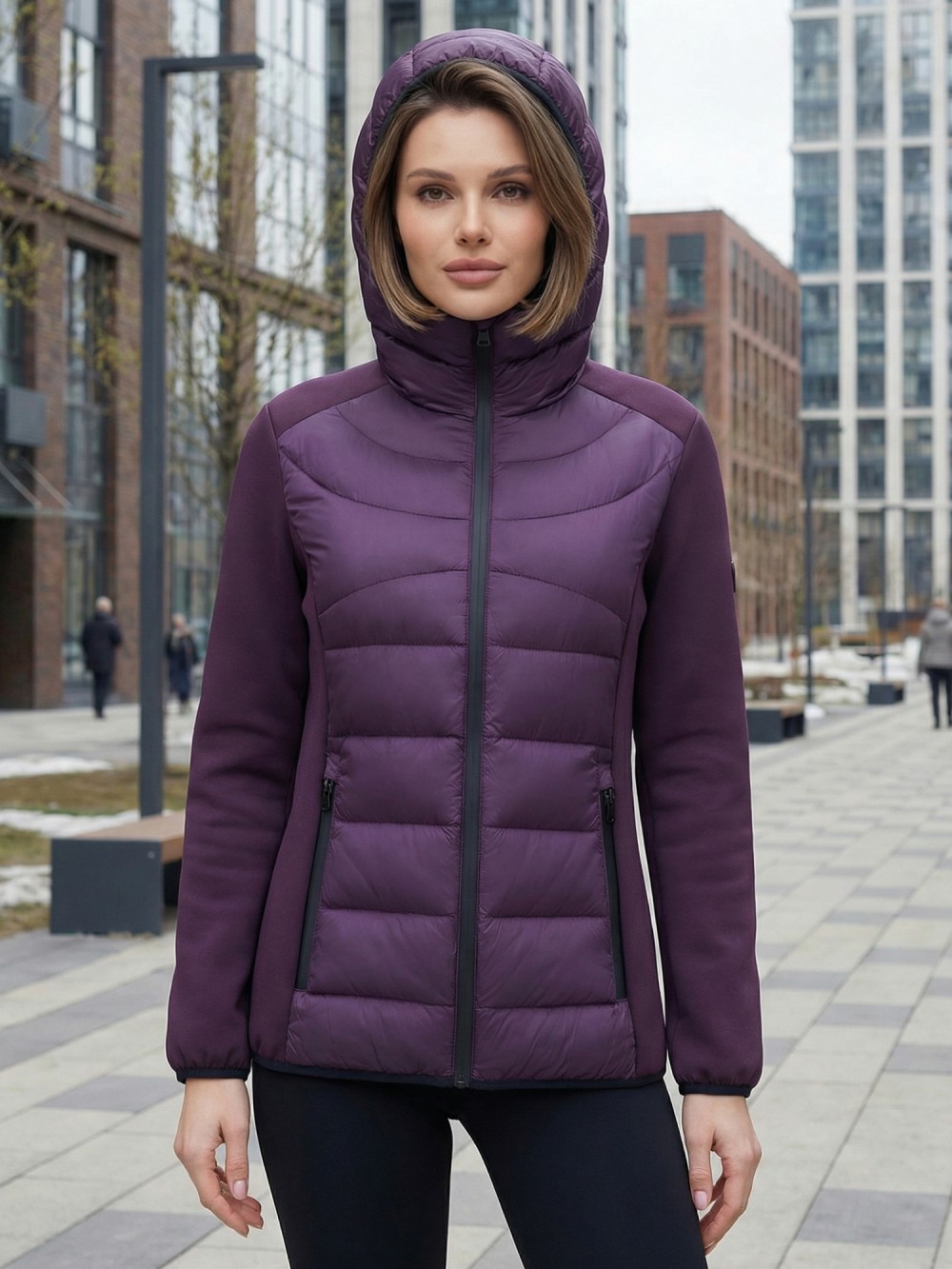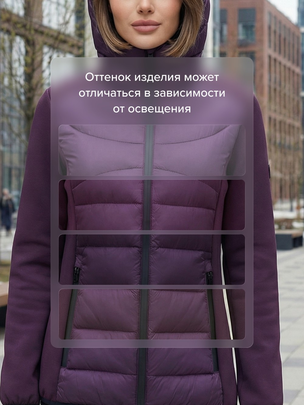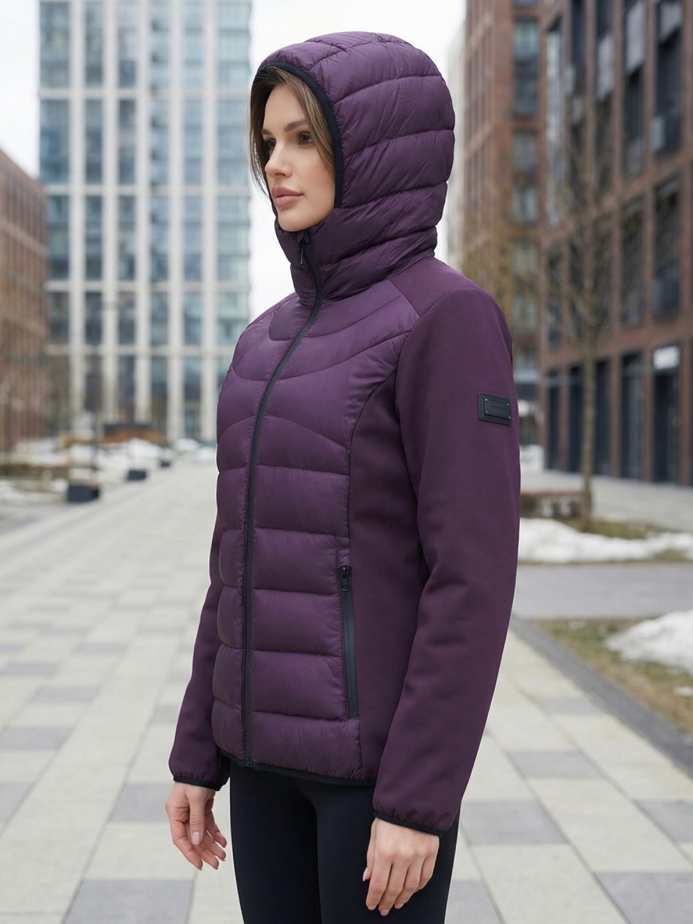 Куртка женская гибридная стёганая с капюшоном с графеновой подкладкой темно-фиолетового цвета 9626_1TF