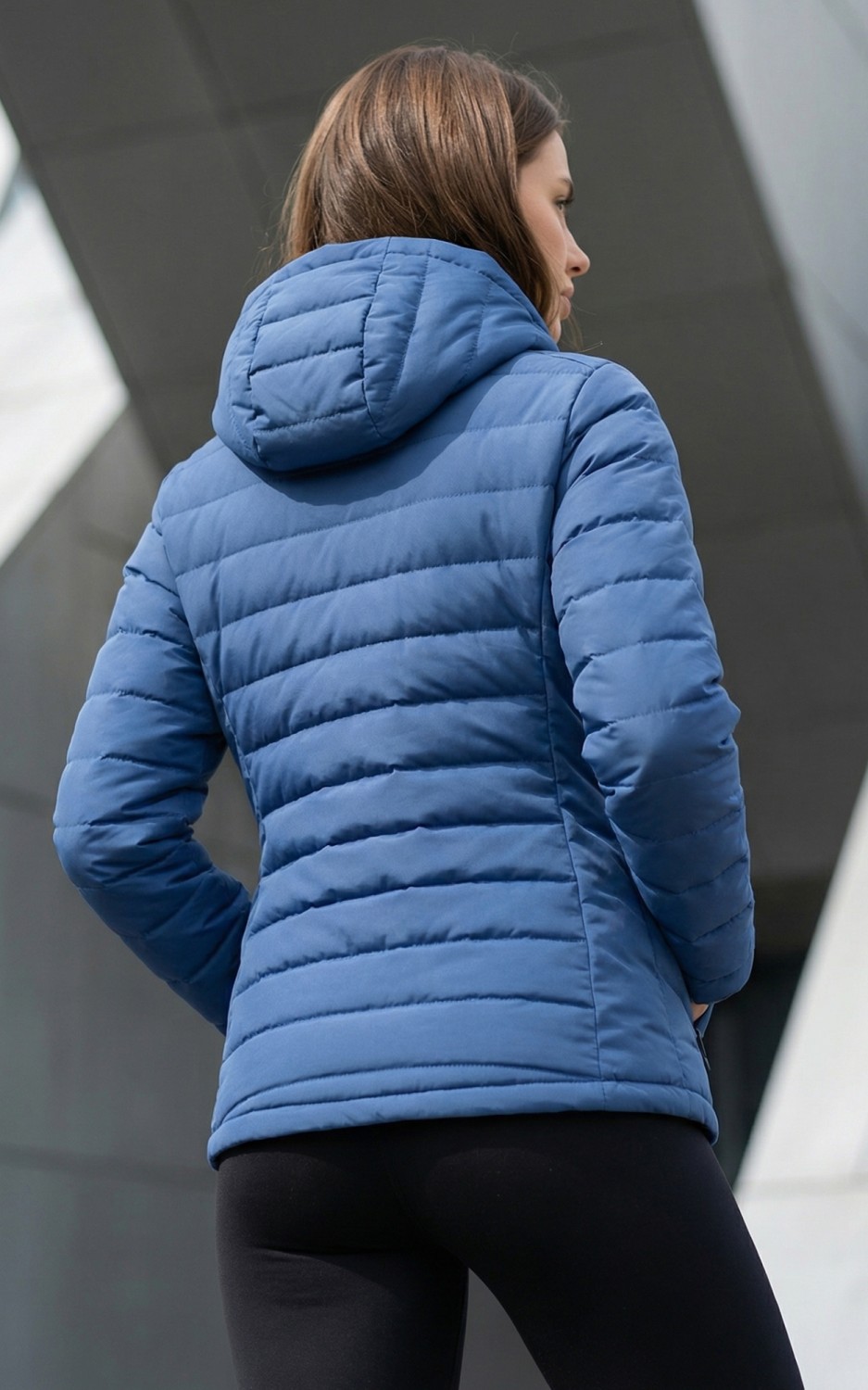 Куртка женская стёганая с капюшоном с графеновой подкладкой синего цвета 9624_1S