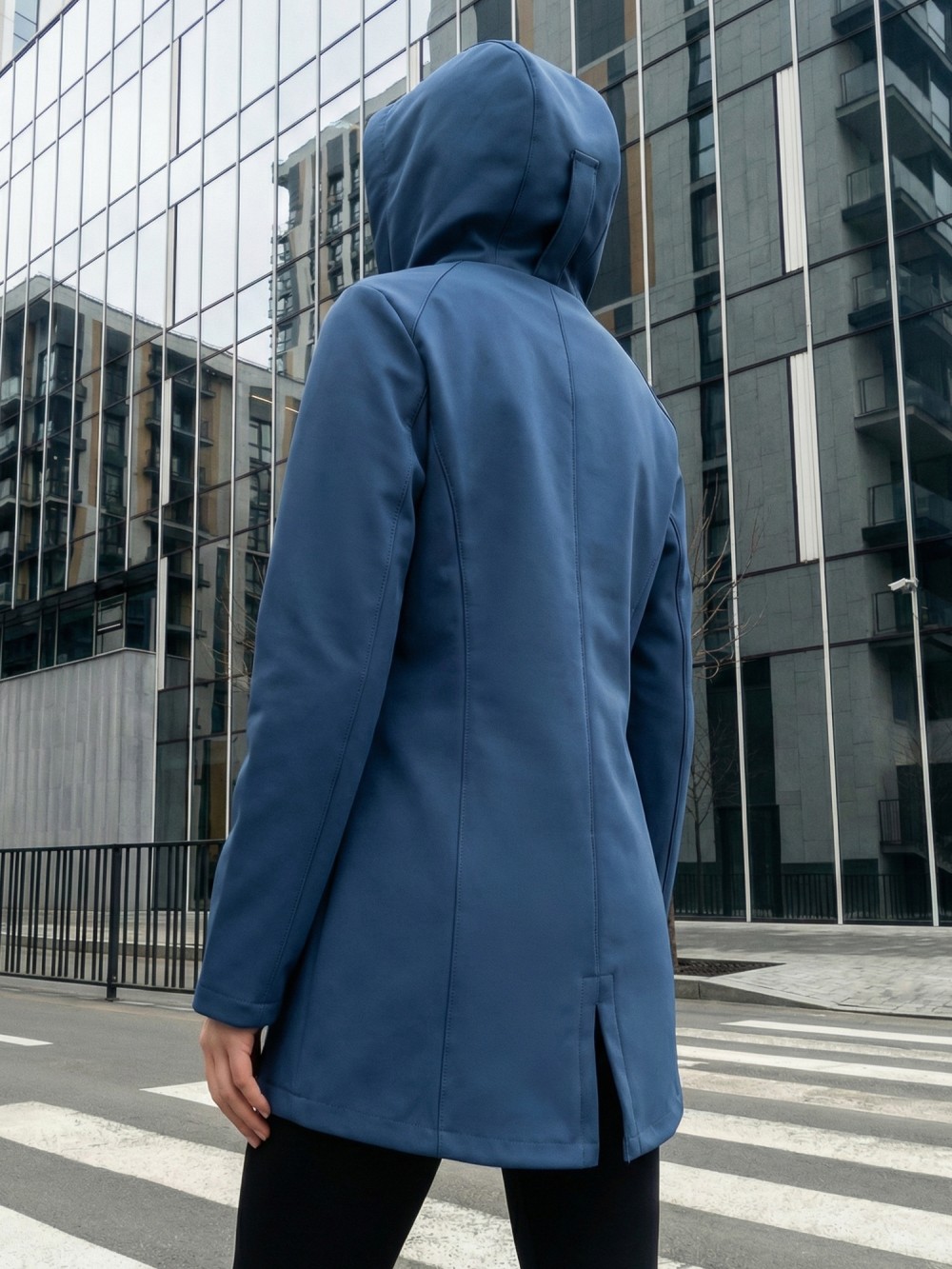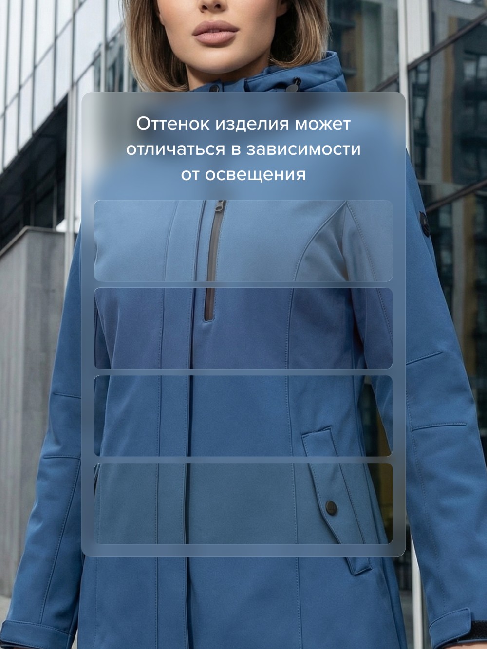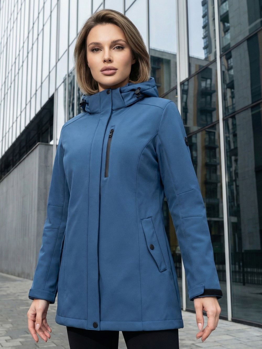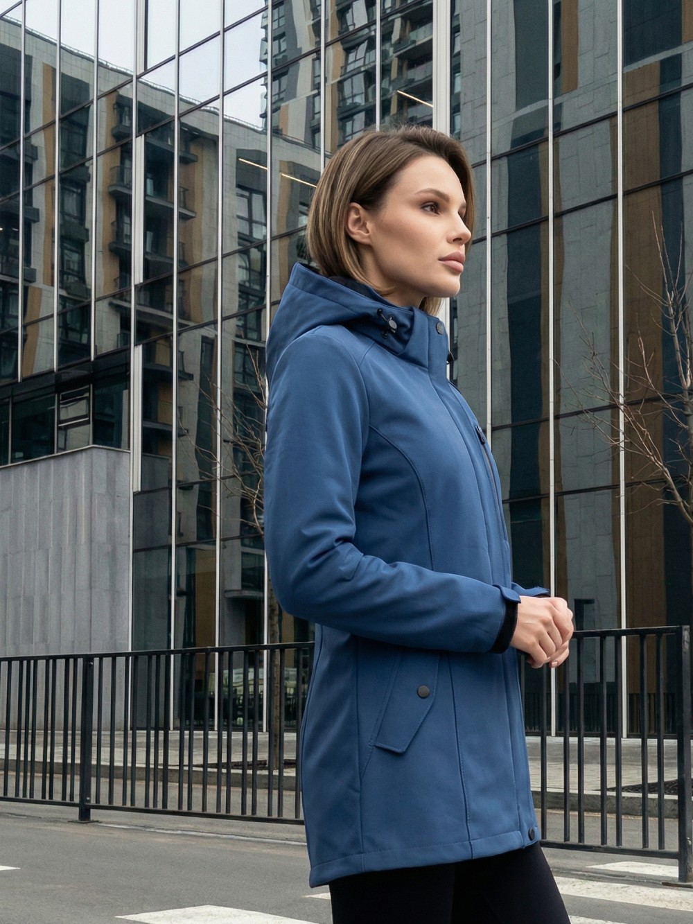 Парка женская софтшелл виндстоппер удлинённая с капюшоном синего цвета 9618_1S