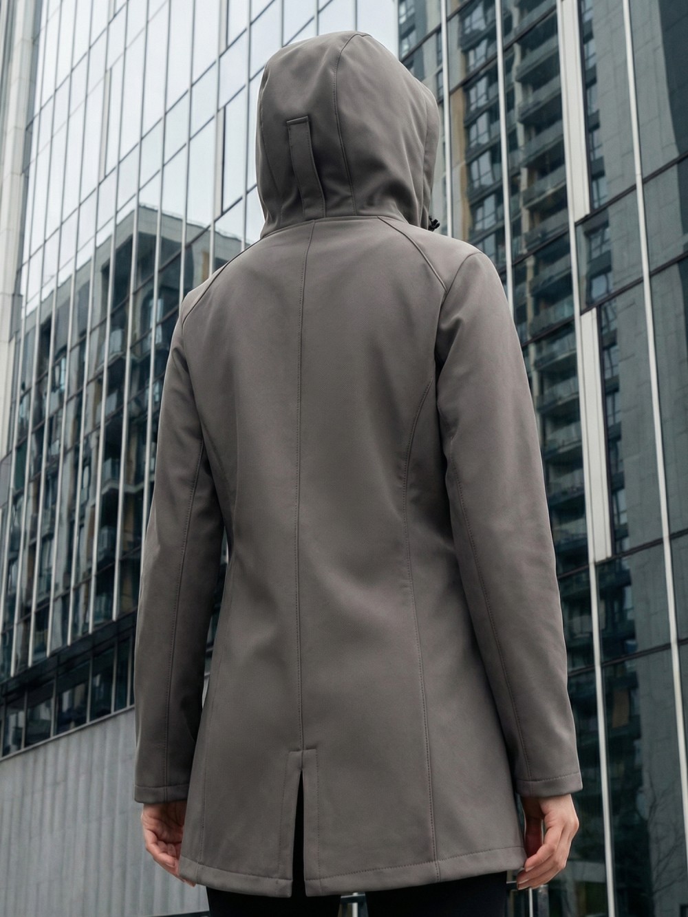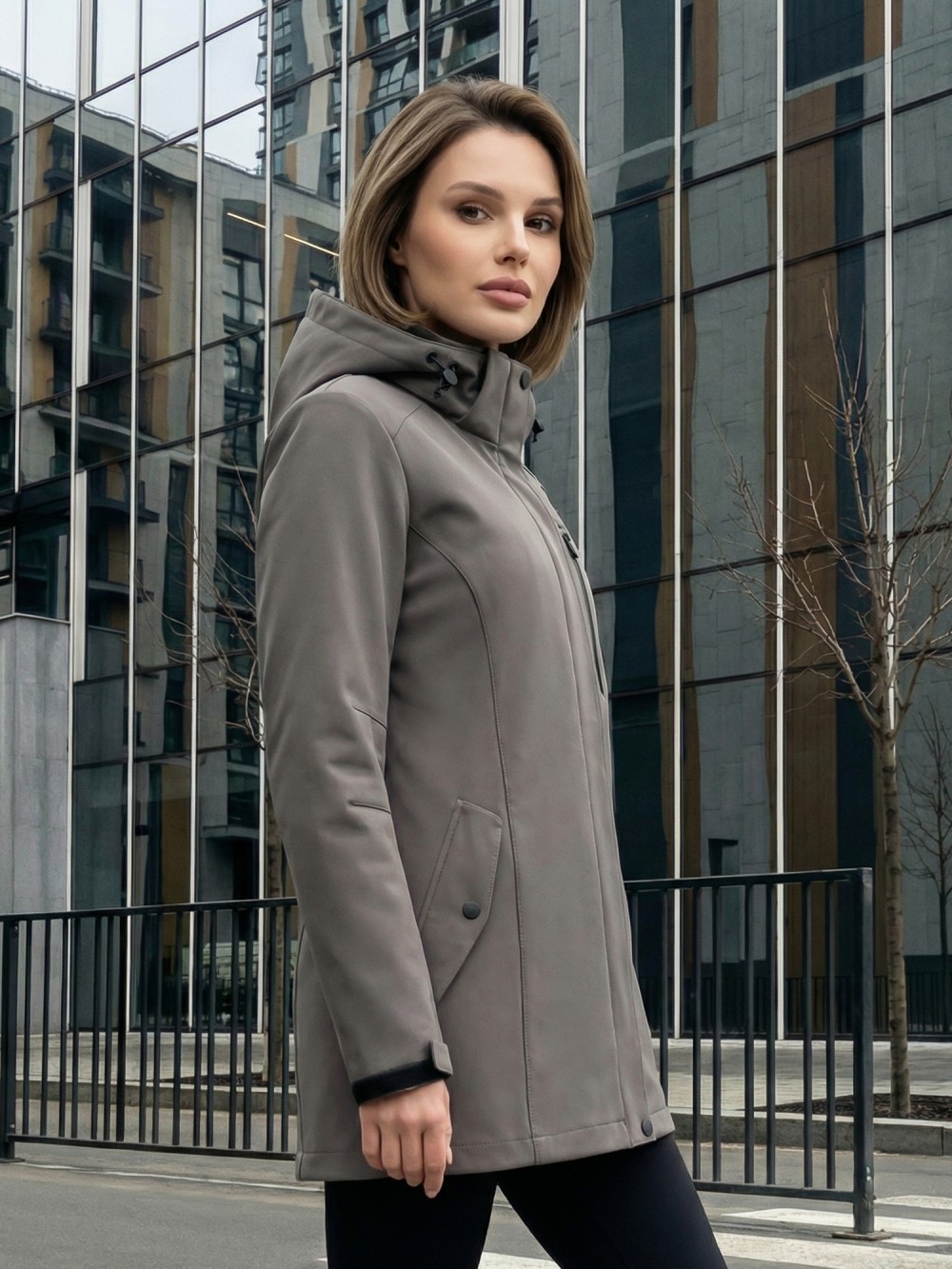 Парка женская софтшелл виндстоппер удлинённая с капюшоном темно-серого цвета 9618_1TC