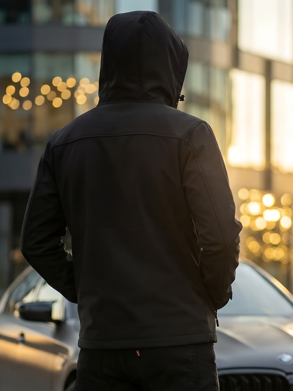Ветровка мужская софтшелл виндстоппер с капюшоном спортивная черного цвета 9617_1Ch